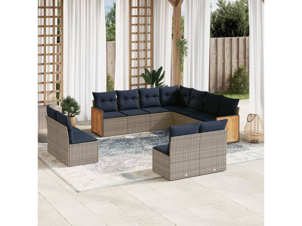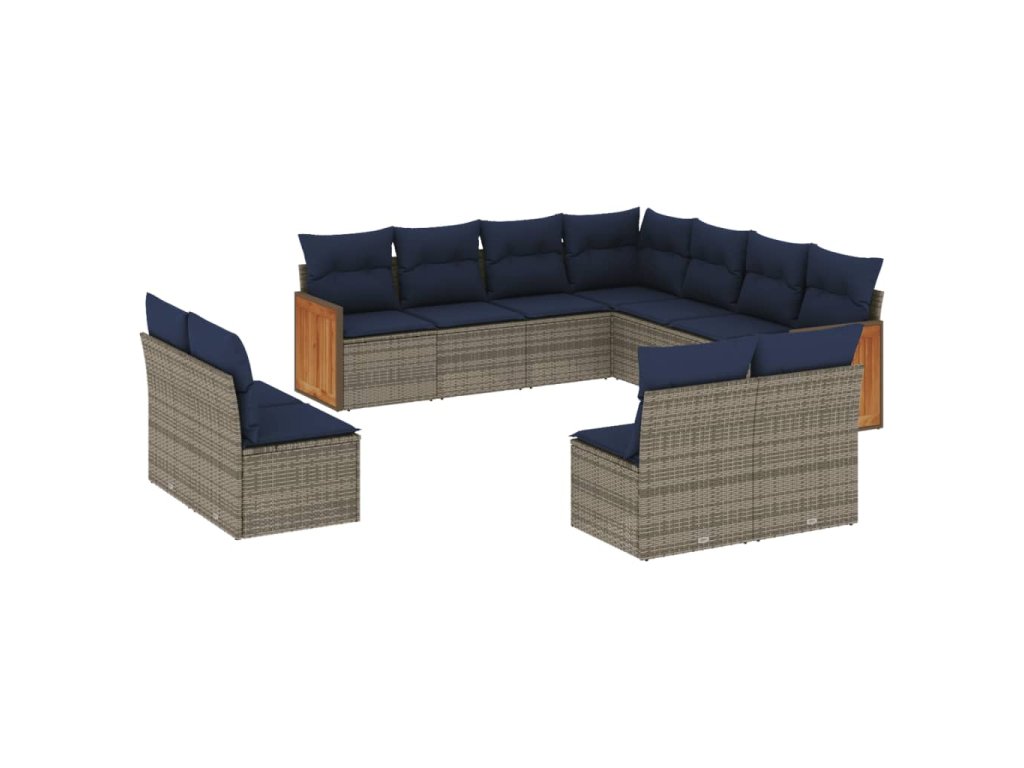 11dílná zahradní sedací souprava s poduškami šedá polyratan 3260171