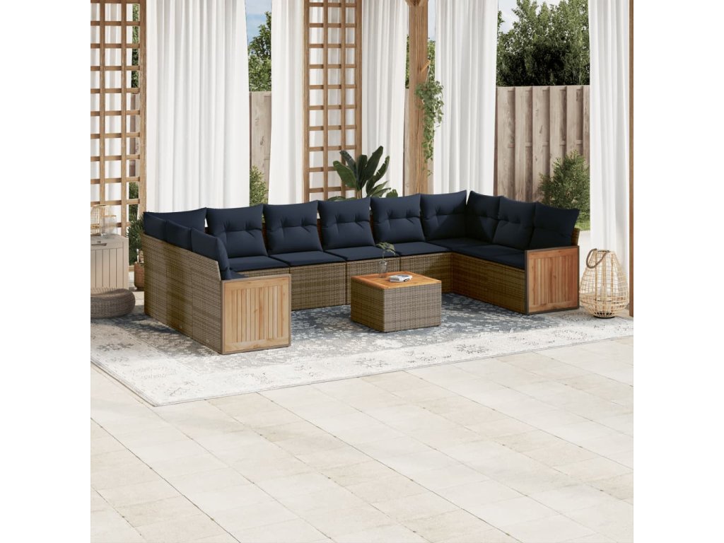 11dílná zahradní sedací souprava s poduškami šedá polyratan 3260416