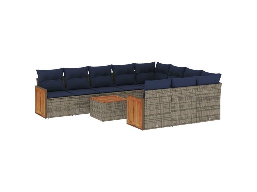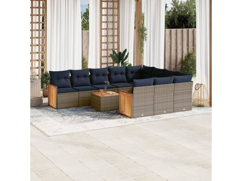 11dílná zahradní sedací souprava s poduškami šedá polyratan 3260430
