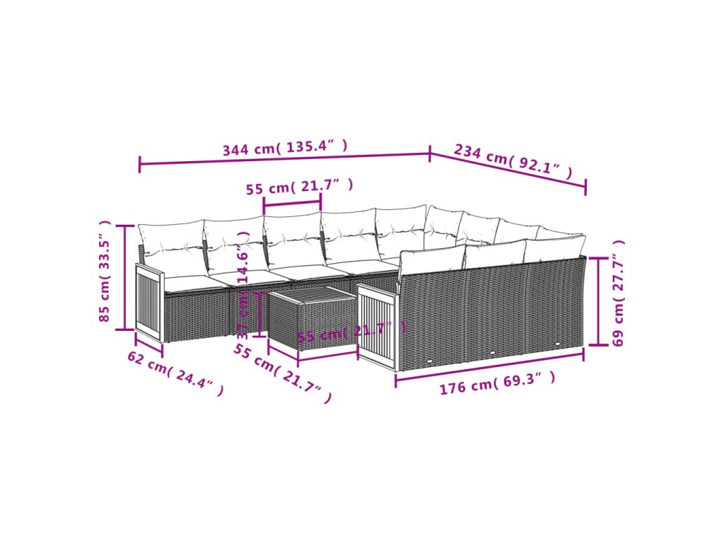 Tato zahradní sedací souprava je dokonalým doplňkem vaší zahrady, terasy nebo dvorku a poskytne vám pohodlné a příjemné místo, kde si můžete povídat s rodinou a přáteli nebo jen tak odpočívat a užívat si pobyt venku.
