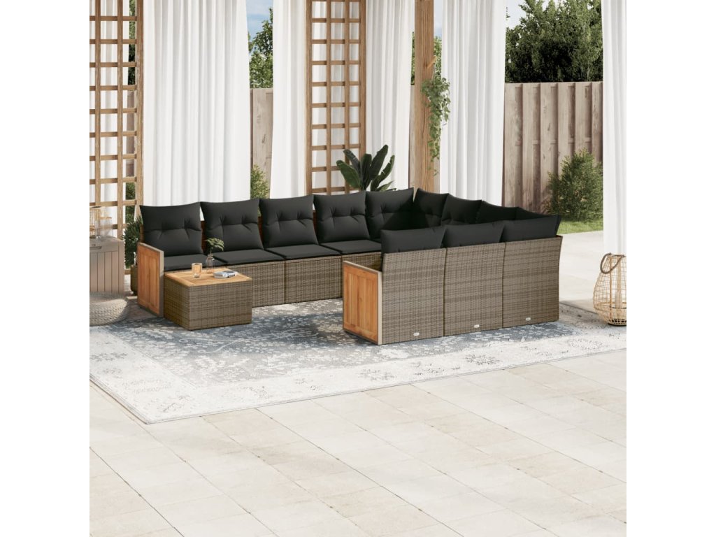 11dílná zahradní sedací souprava s poduškami šedá polyratan 3260450