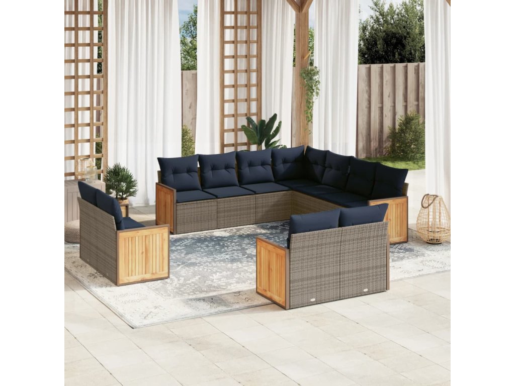 11dílná zahradní sedací souprava s poduškami šedá polyratan 3260584