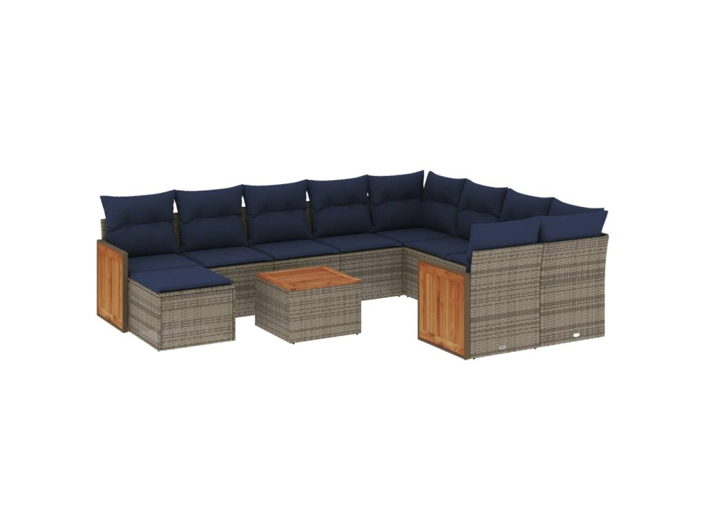 11dílná zahradní sedací souprava s poduškami šedá polyratan 3260647