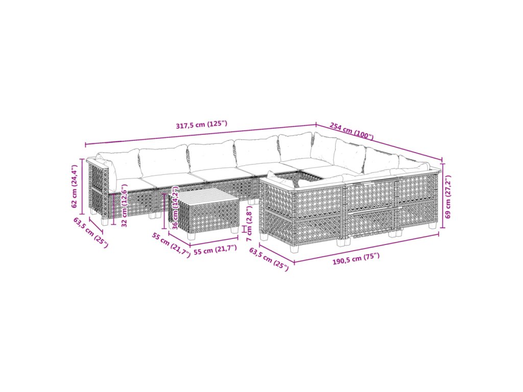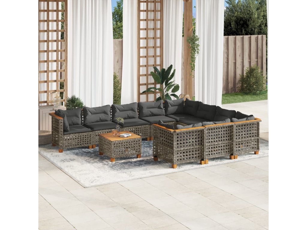 11dílná zahradní sedací souprava s poduškami šedá polyratan 3262041