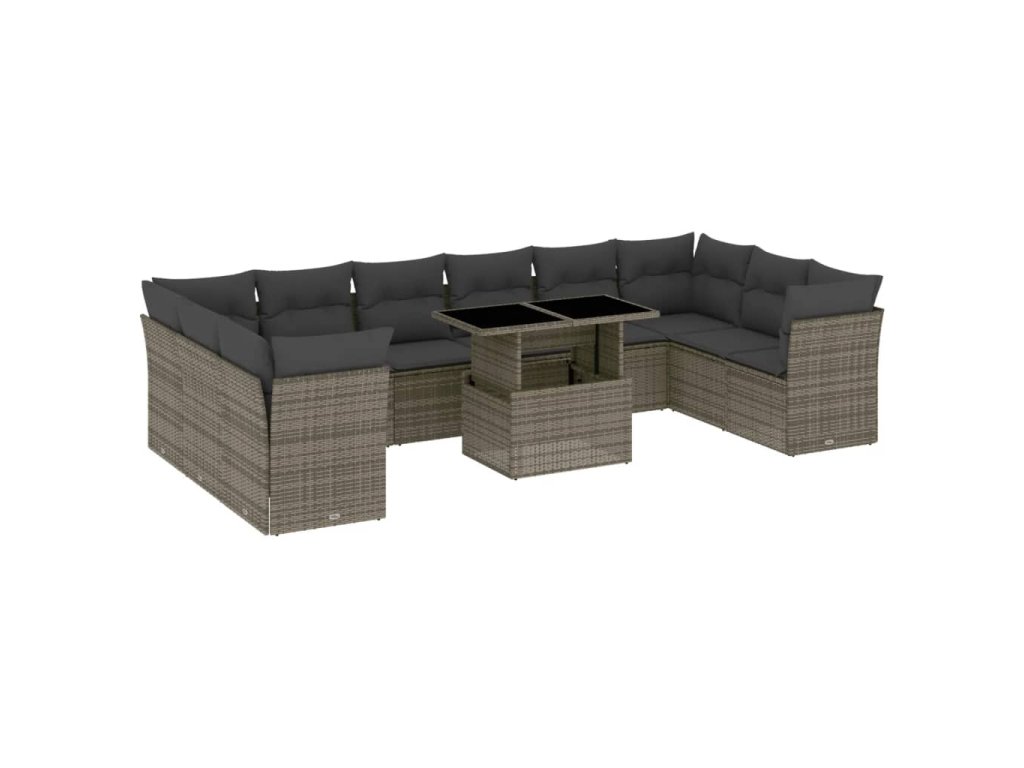 11dílná zahradní sedací souprava s poduškami šedá polyratan 3266860