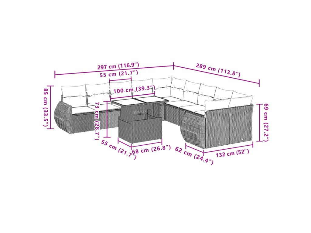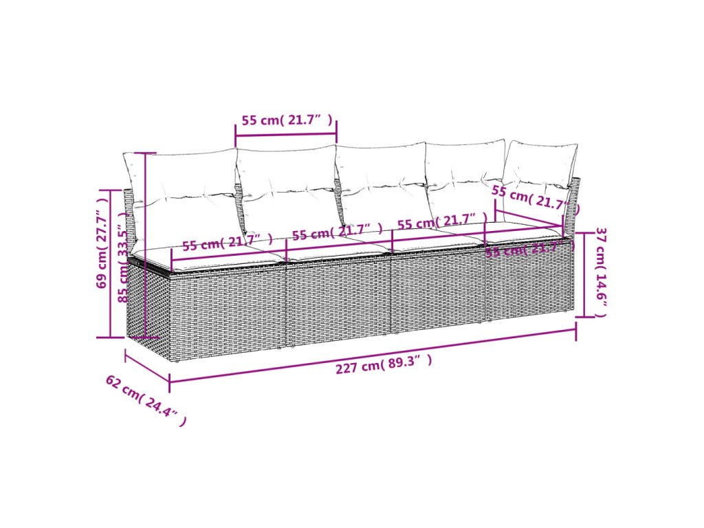 Tato zahradní sedací souprava je dokonalým doplňkem vaší zahrady, terasy nebo dvorku a poskytne vám pohodlné a příjemné místo, kde si můžete povídat s rodinou a přáteli nebo jen tak odpočívat a užívat si pobyt venku.