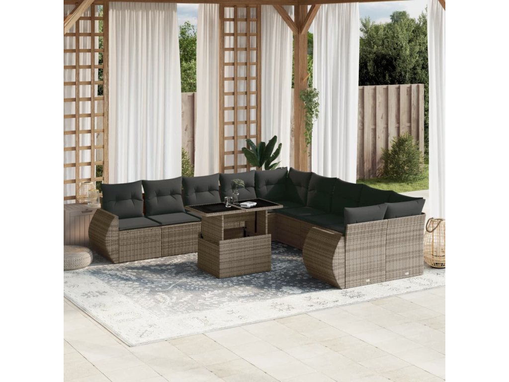 11dílná zahradní sedací souprava s poduškami šedá polyratan 3268800