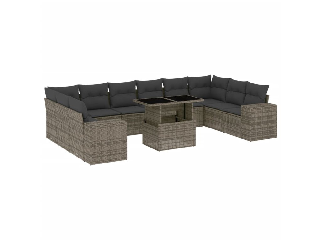 11dílná zahradní sedací souprava s poduškami šedá polyratan 3269410