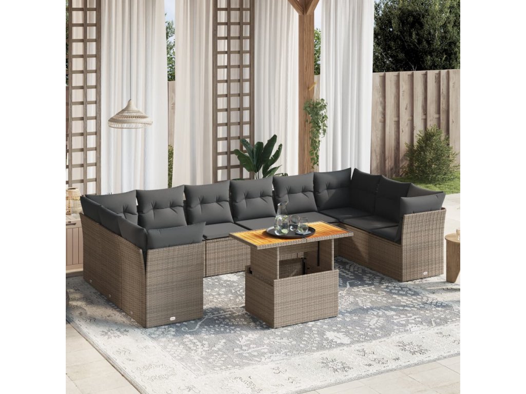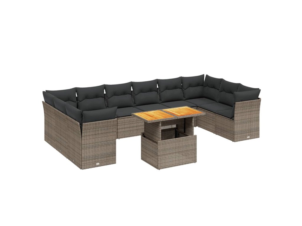 11dílná zahradní sedací souprava s poduškami šedá polyratan 3271025