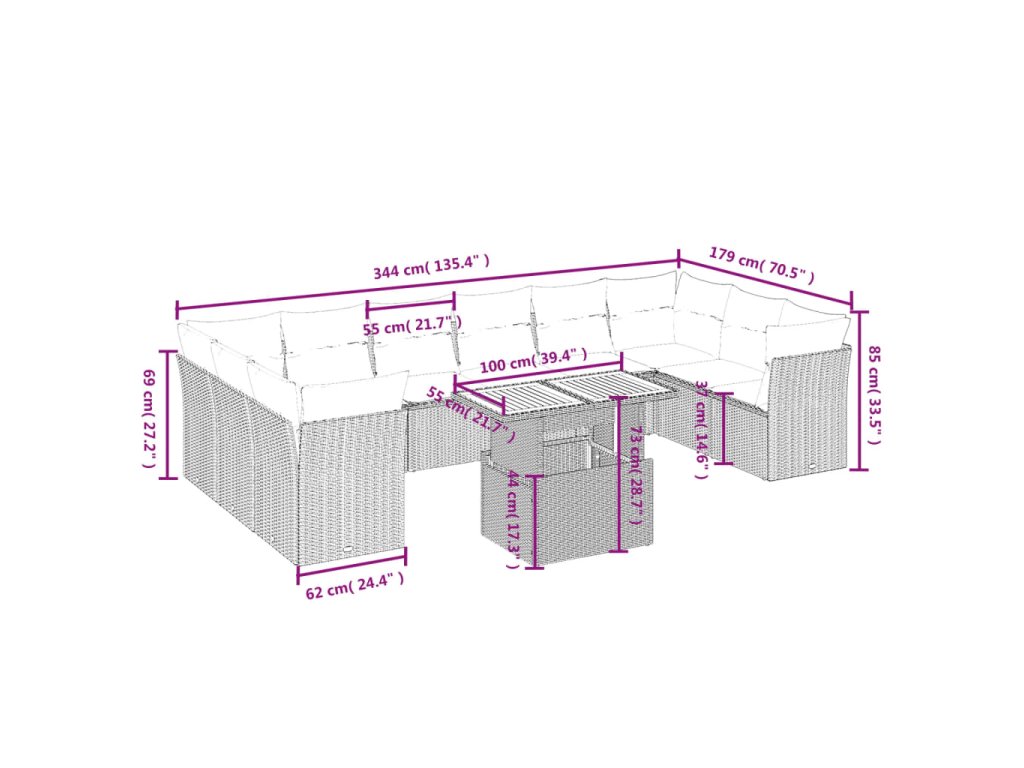 Tato zahradní sedací souprava je dokonalým doplňkem vaší zahrady, terasy nebo dvorku a poskytne vám pohodlné a příjemné místo, kde si můžete povídat s rodinou a přáteli nebo jen tak odpočívat a užívat si pobyt venku.