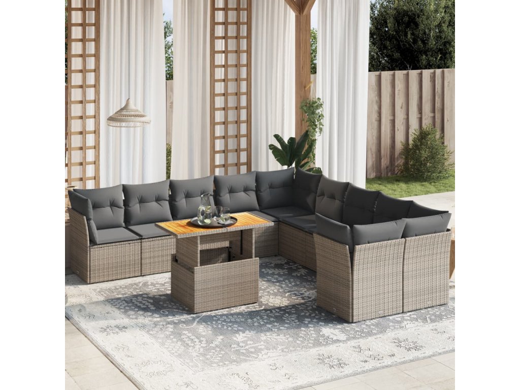 11dílná zahradní sedací souprava s poduškami šedá polyratan 3271046