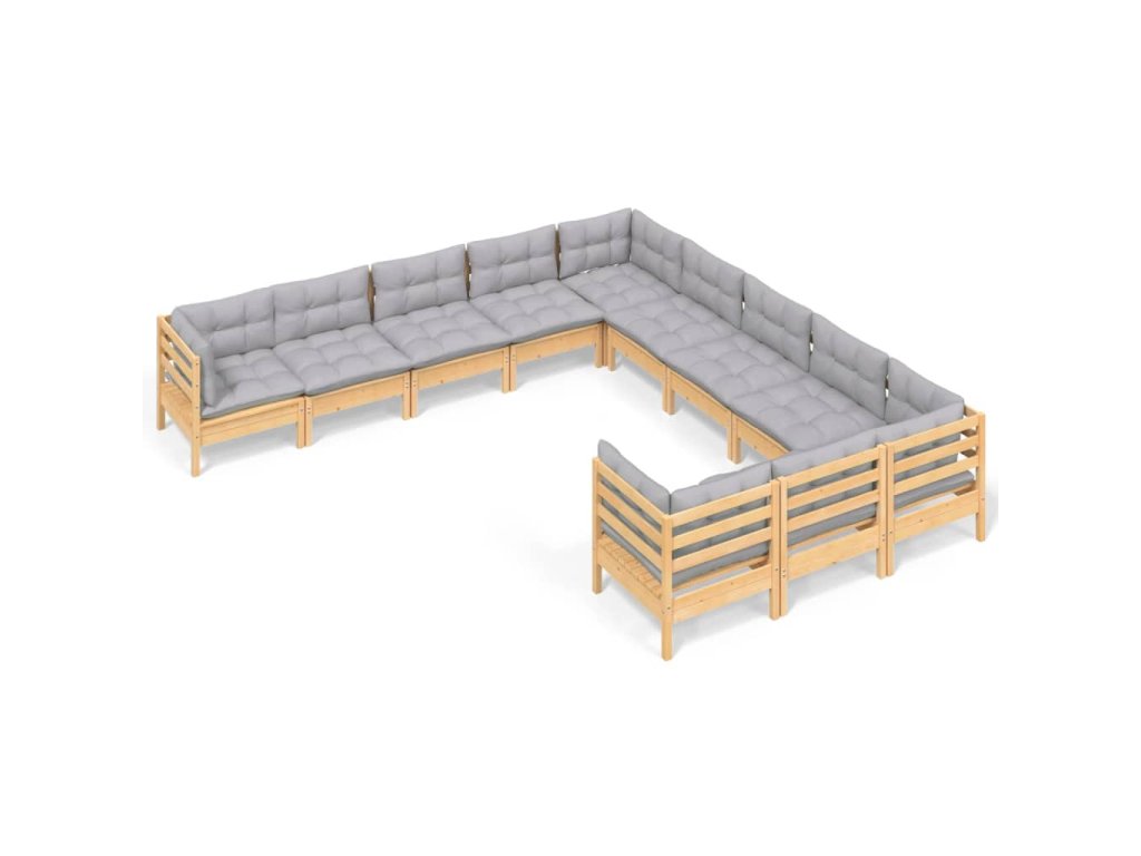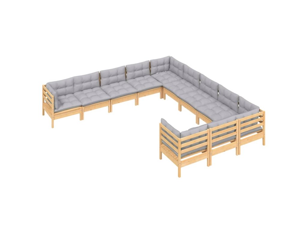 11dílná zahradní sedací souprava s šedými poduškami borovice 3097018