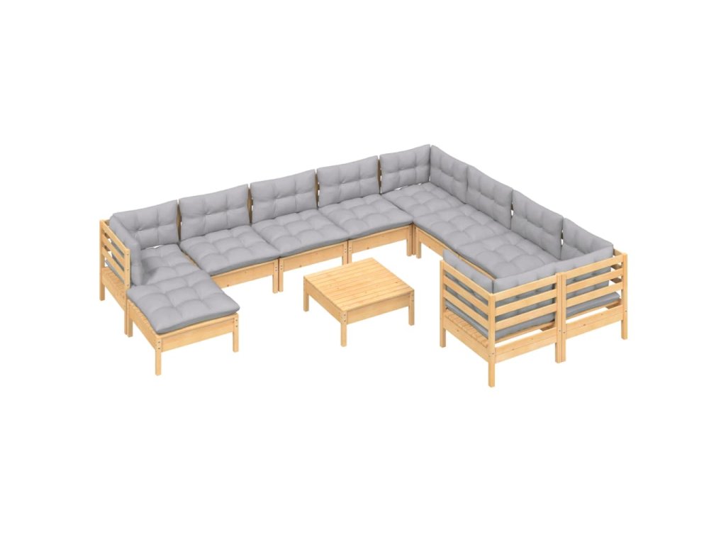 11dílná zahradní sedací souprava s šedými poduškami borovice 3097036