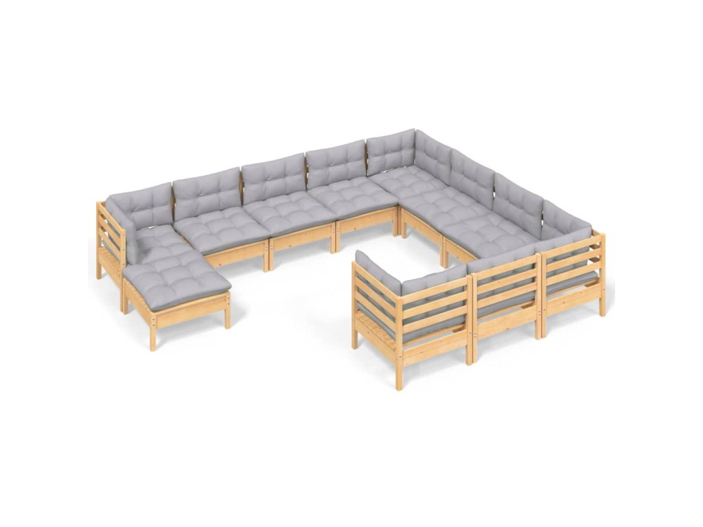 11dílná zahradní sedací souprava s šedými poduškami borovice 3097042