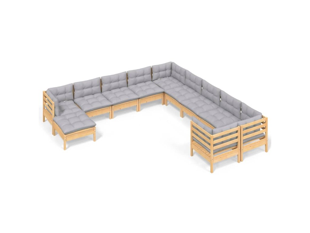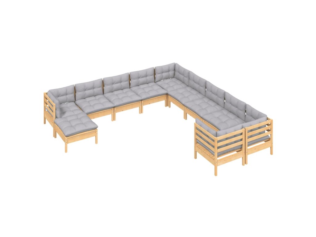 11dílná zahradní sedací souprava s šedými poduškami borovice 3097054