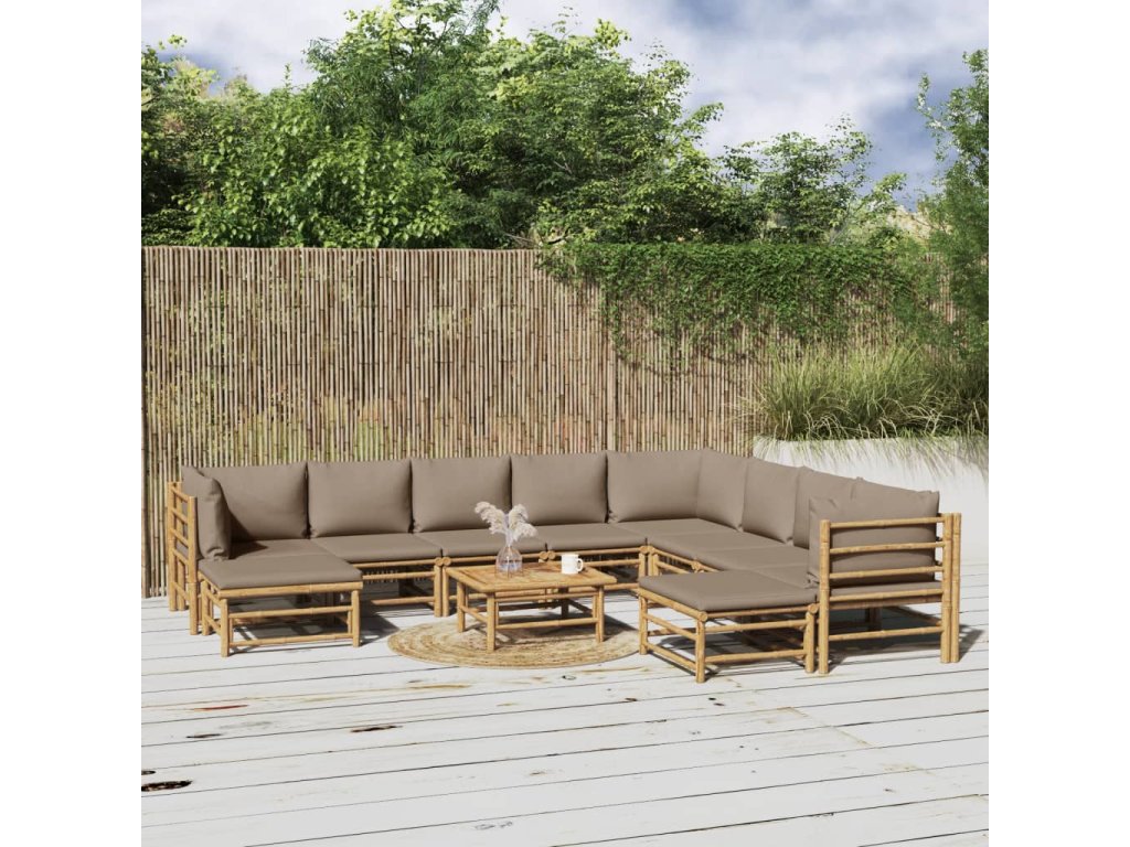 11dílná zahradní sedací souprava s taupe poduškami bambus 3155129