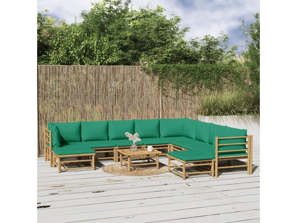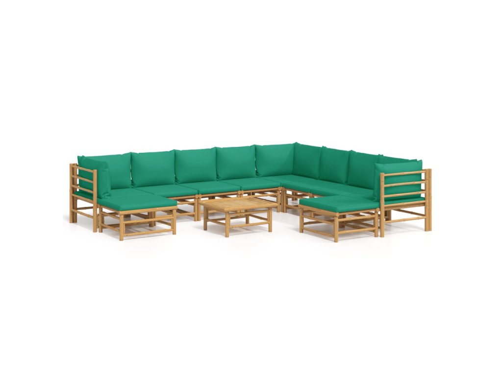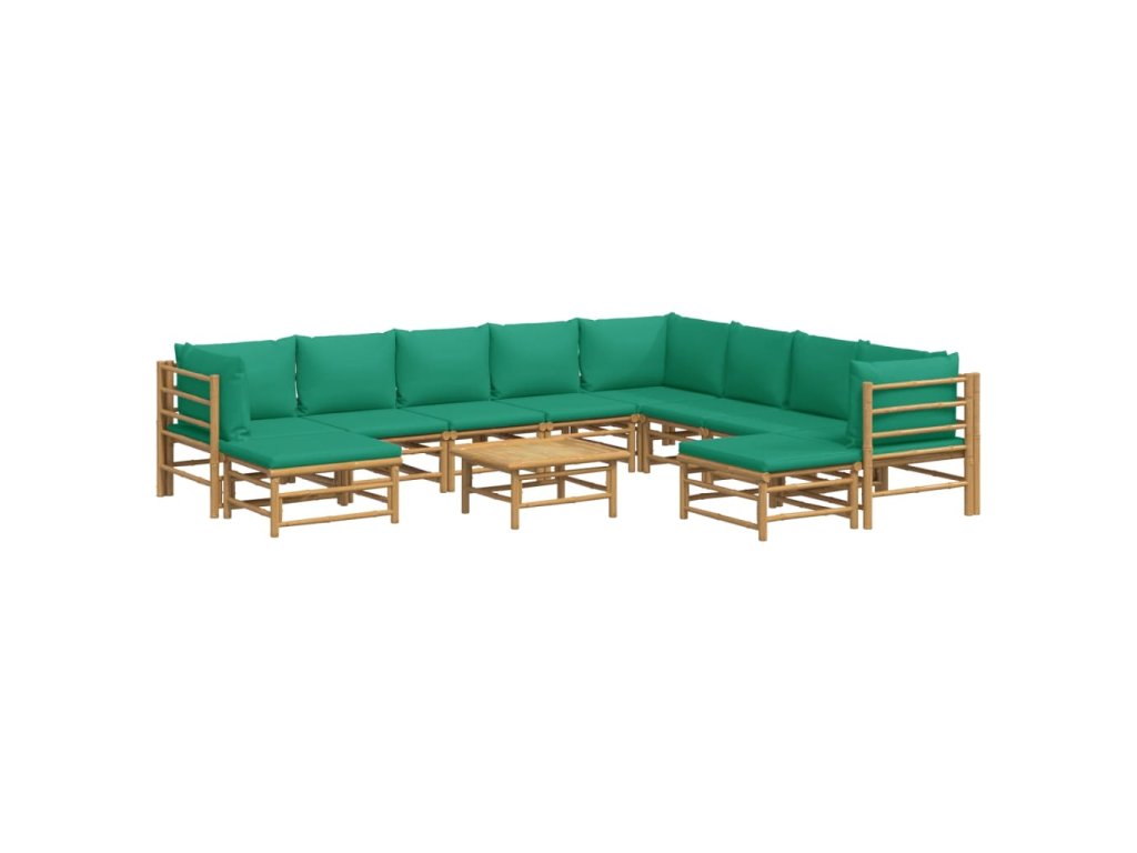 11dílná zahradní sedací souprava se zelenými poduškami bambus 3155161