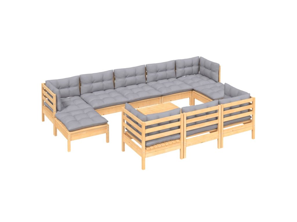 11dílná zahradní sedací souprava šedé podušky masivní borovice 3097144