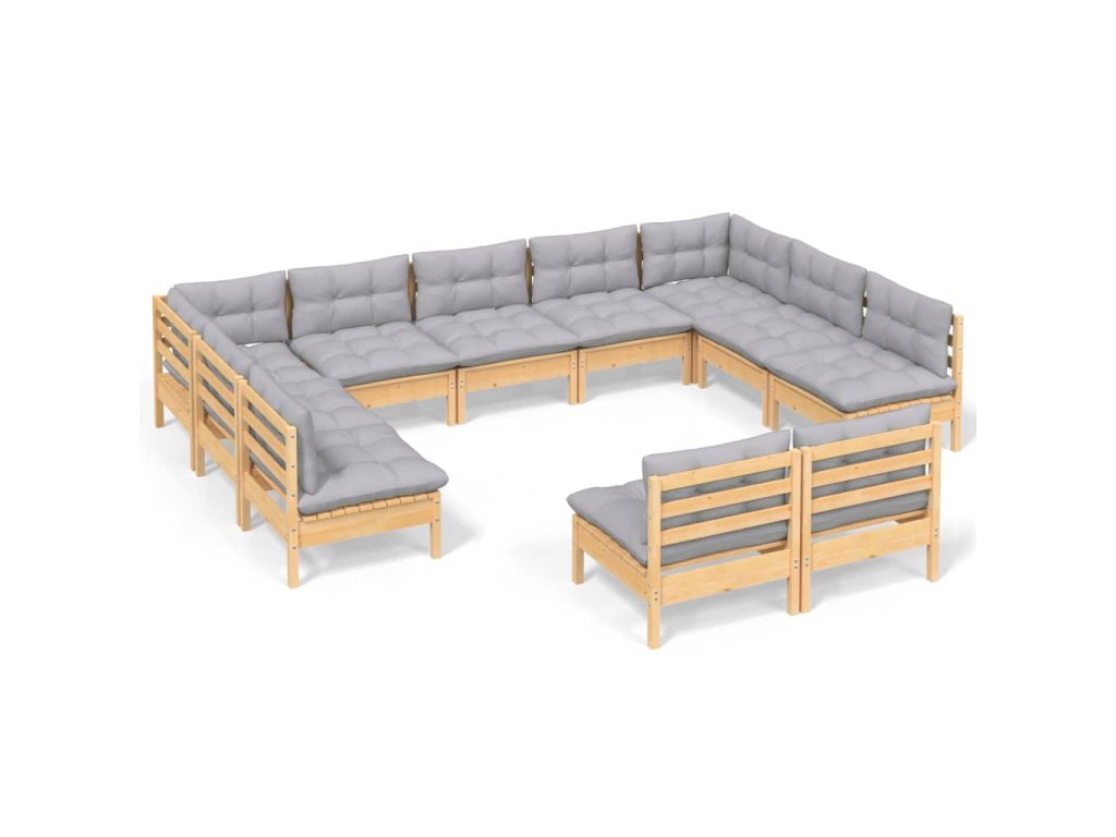 11dílná zahradní sedací souprava šedé podušky masivní borovice 3097210