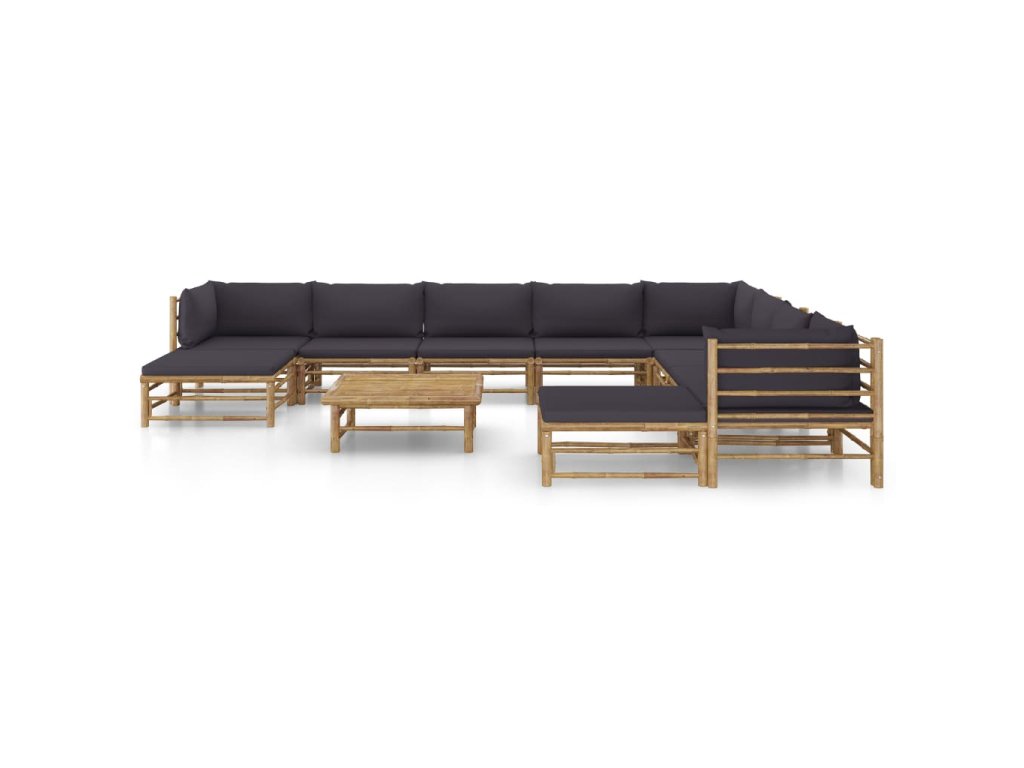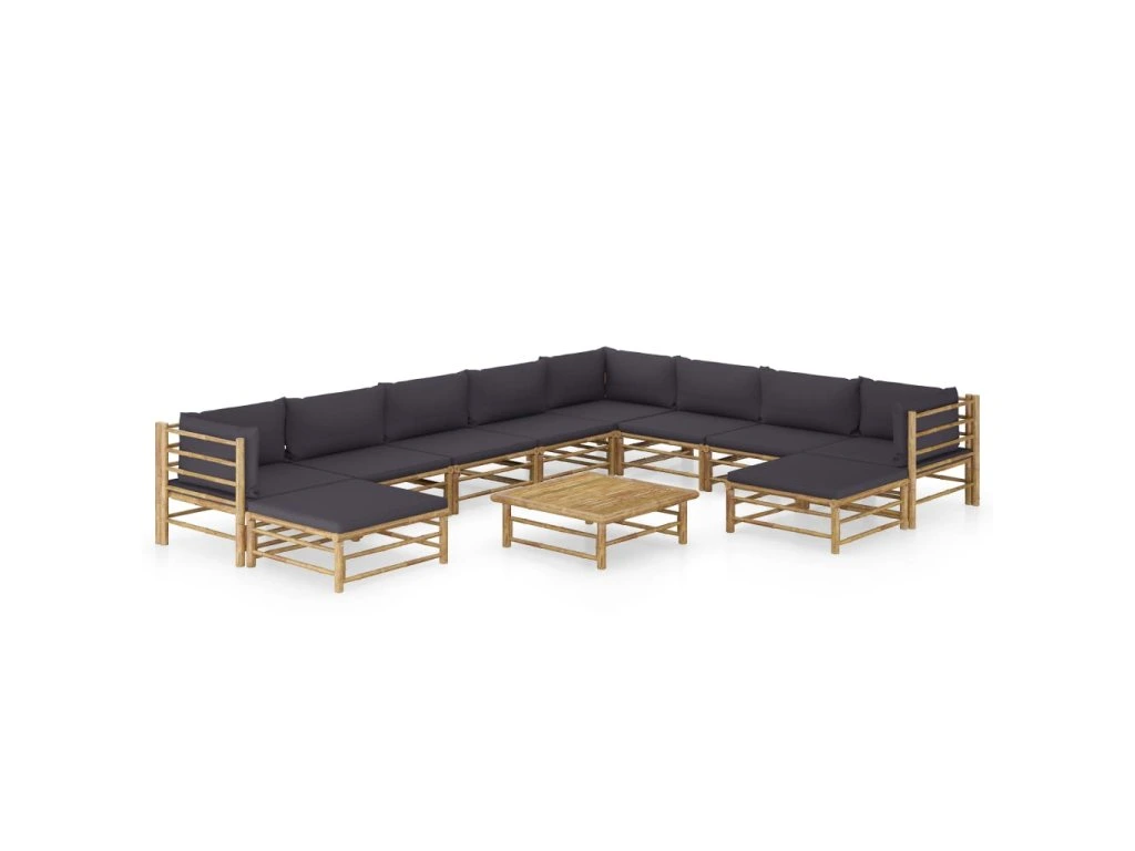 11dílná zahradní sedací souprava + tmavě šedé podušky bambus 3058224