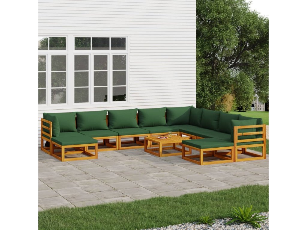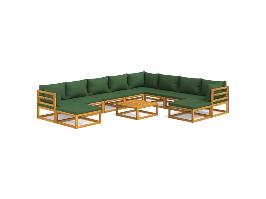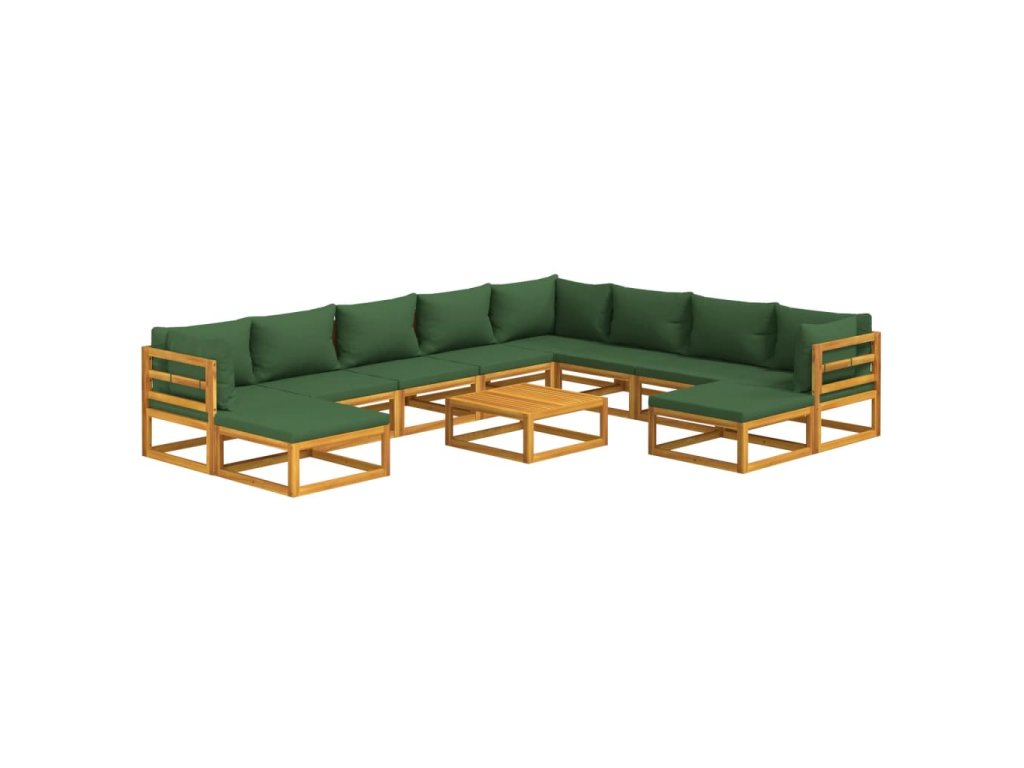 11dílná zahradní sedací souprava zelené podušky masivní dřevo 3155324