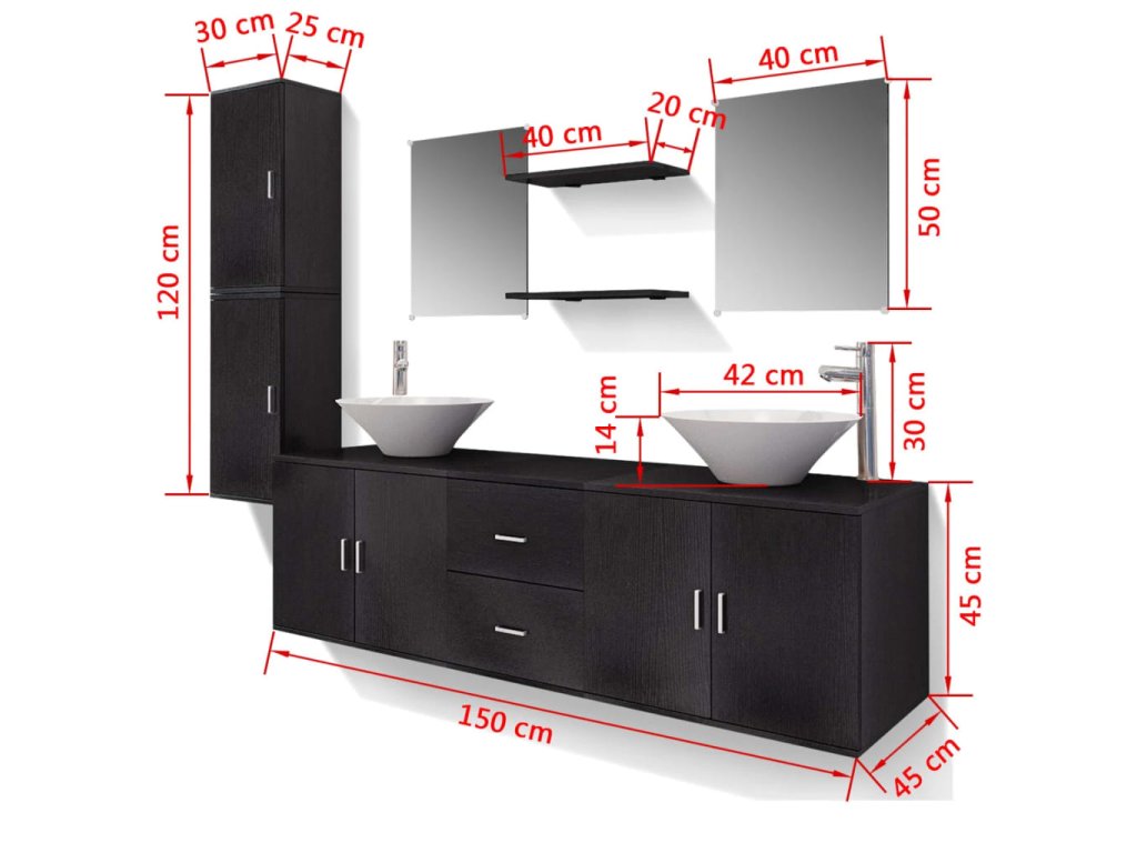 - Rozměry skříňky pod umyvadlo: 150 x 45 x 45 cm (D x Š x V)