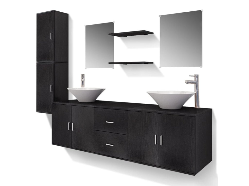 11dílný set koupelnového nábytku s umyvadlem a baterií černý 273687