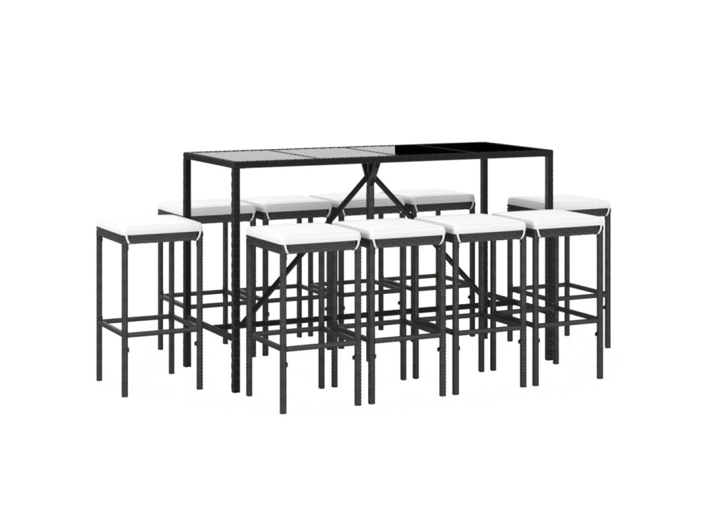11dílný zahradní barový set s poduškami černý polyratan 3187639