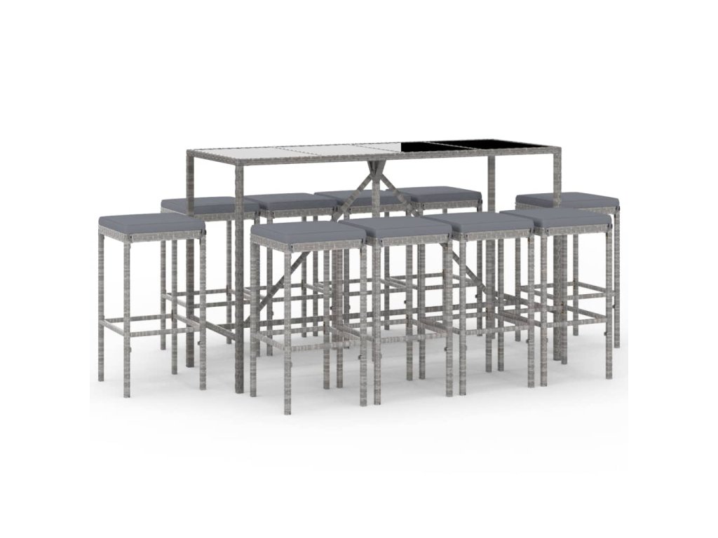 11dílný zahradní barový set s poduškami šedý polyratan 3187640