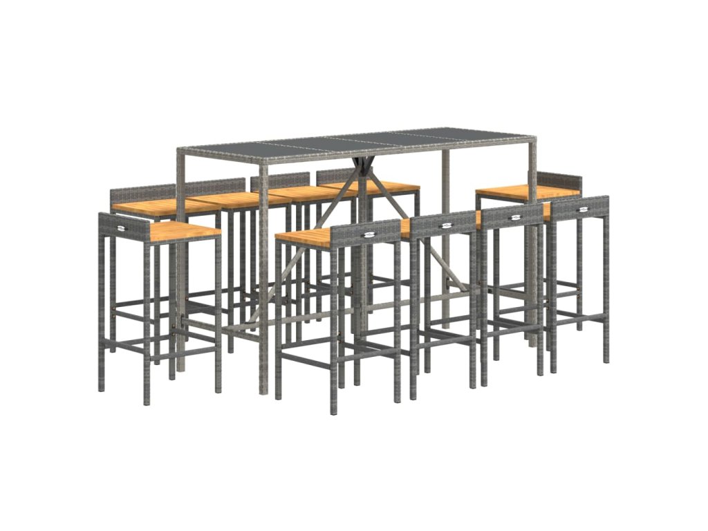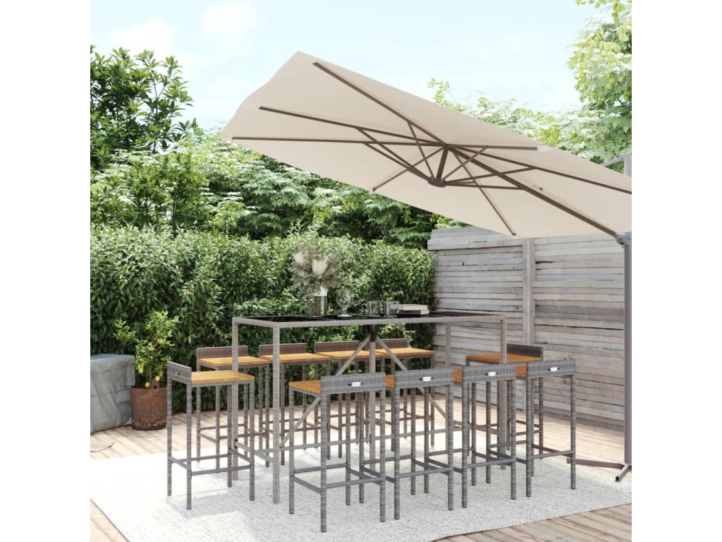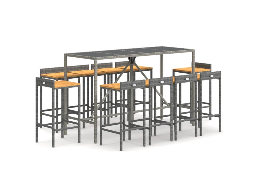 11dílný zahradní barový set šedý polyratan a masivní akácie 3187683