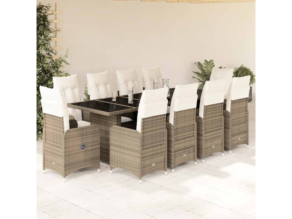 11dílný zahradní bistro set s poduškami béžový polyratan 3277300