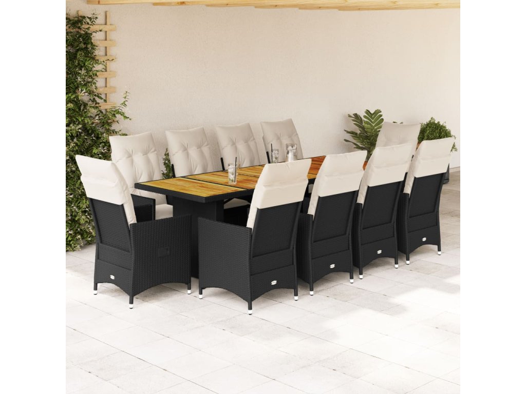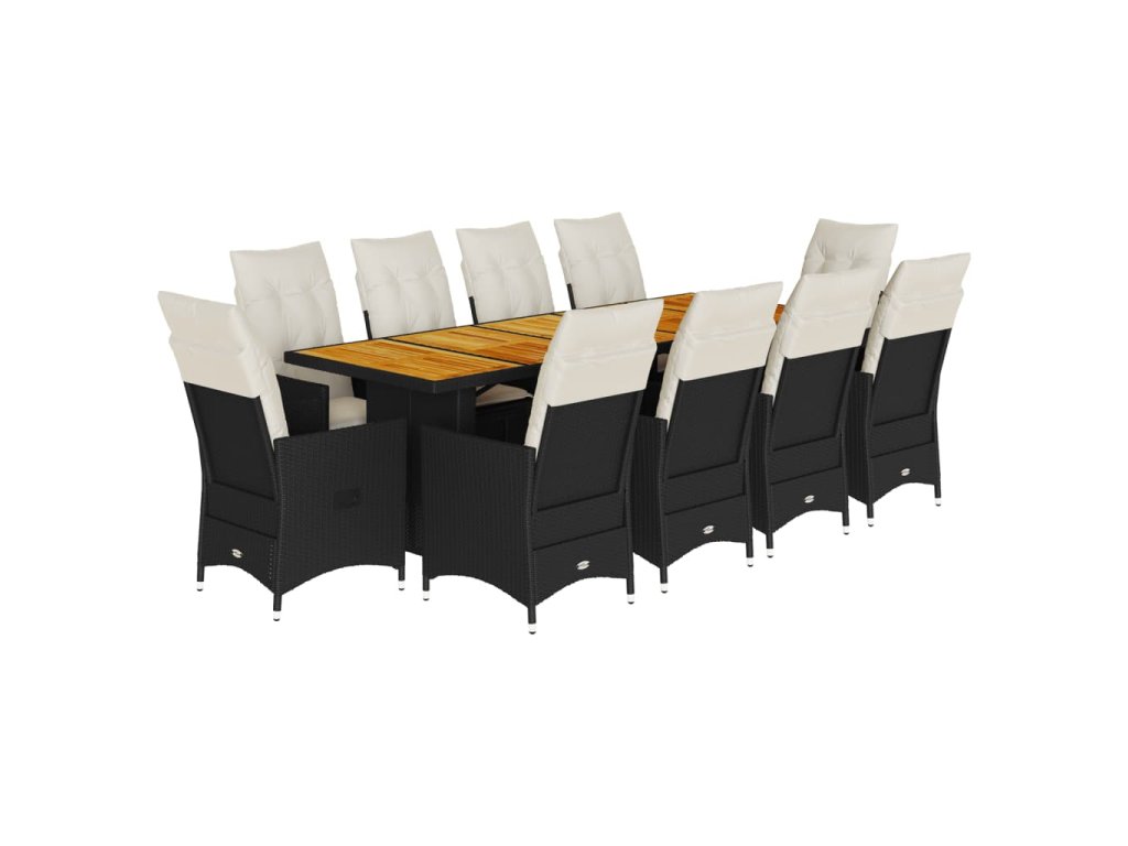11dílný zahradní bistro set s poduškami černý polyratan 3277232