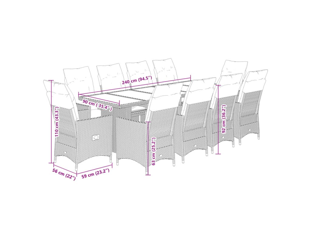 - Pohodlné sezení: Tento venkovní nábytek se silně polstrovanými poduškami a polštáři nabízí pohodlné sezení.