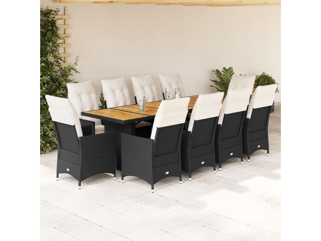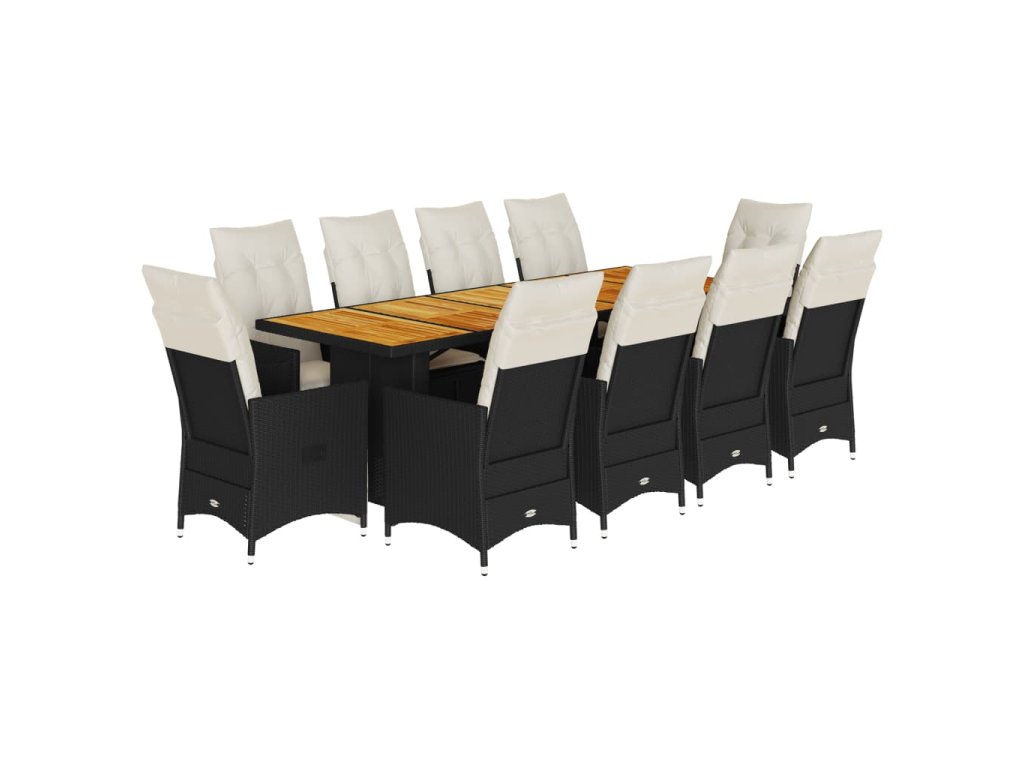 11dílný zahradní bistro set s poduškami černý polyratan 3277233