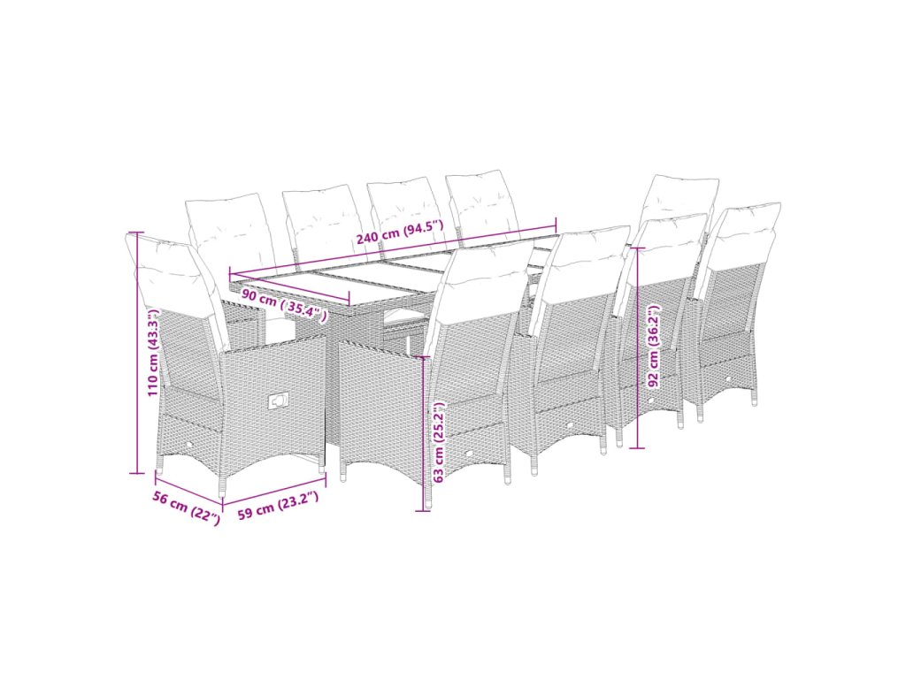 - Rozměry: 240 x 90 x 75 cm (D x Š x V)