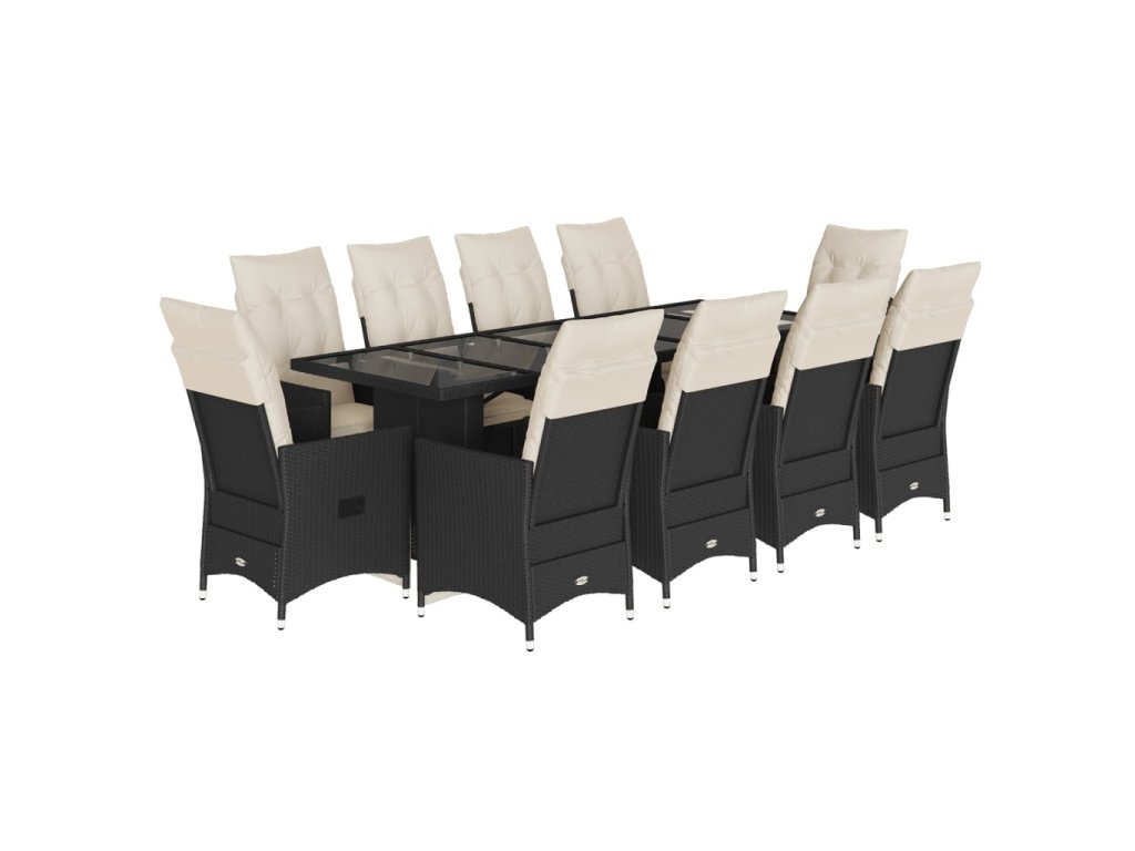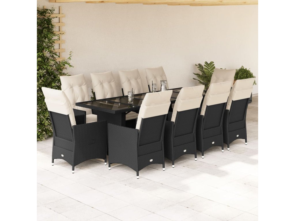 11dílný zahradní bistro set s poduškami černý polyratan 3277258