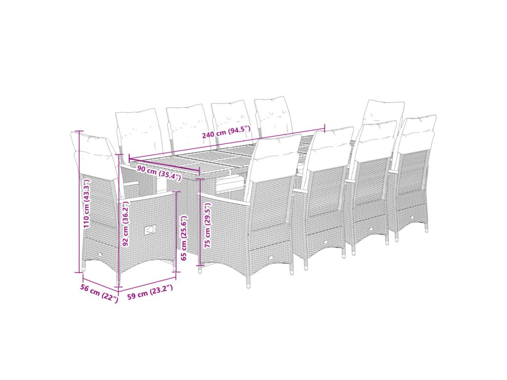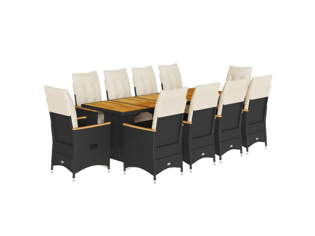 11dílný zahradní bistro set s poduškami černý polyratan 3277268