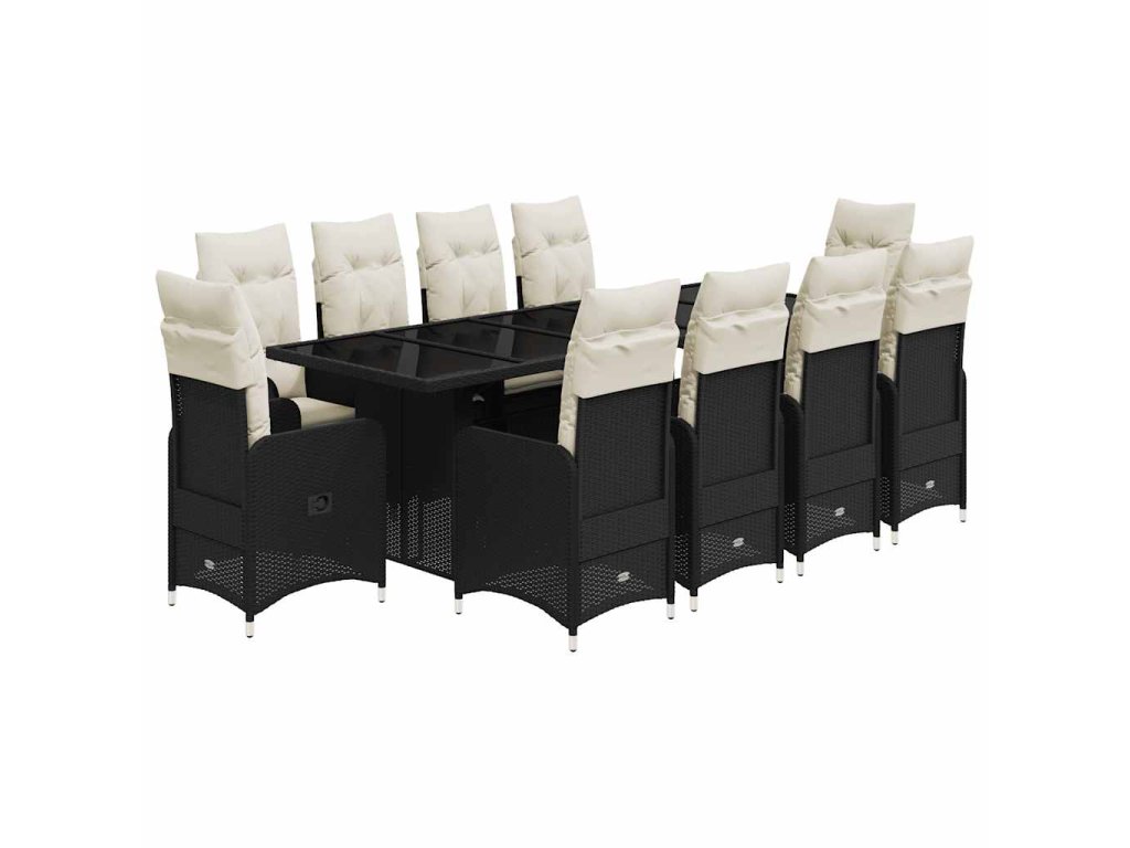 11dílný zahradní bistro set s poduškami černý polyratan 3277275