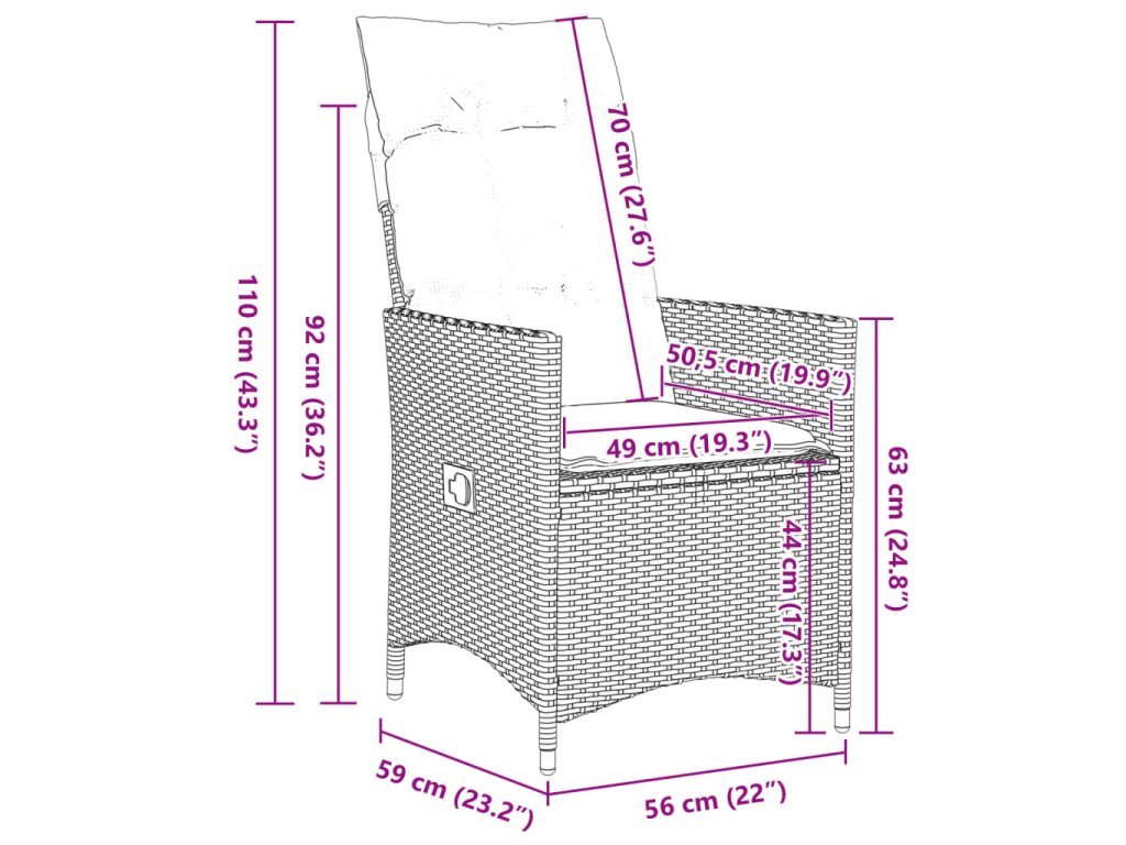 - Rozměry při poloze vsedě: 56 x 59 x 92 cm (Š x H x V)