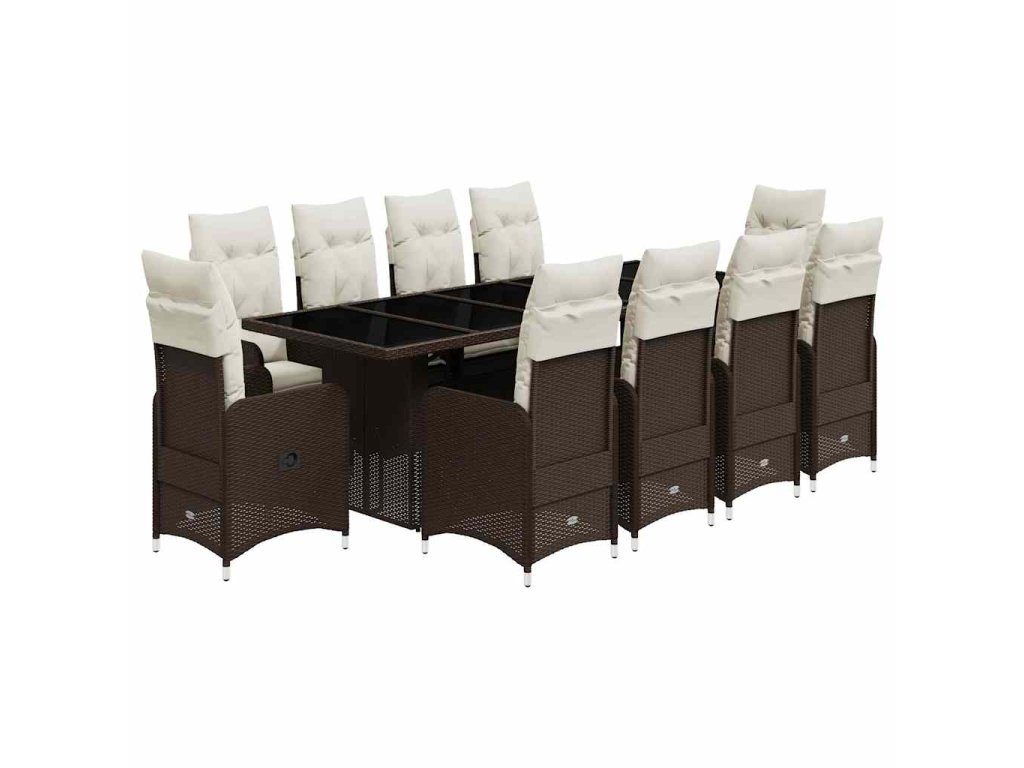 11dílný zahradní bistro set s poduškami hnědý polyratan 3277284