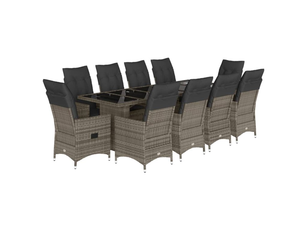11dílný zahradní bistro set s poduškami šedý polyratan 3277241