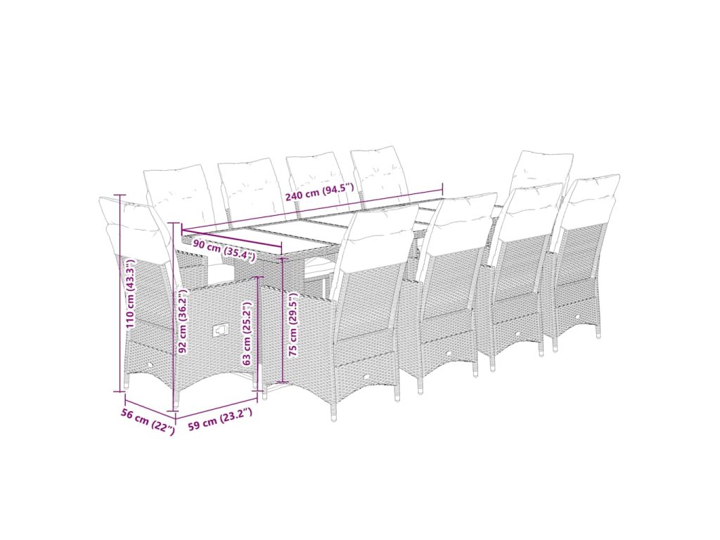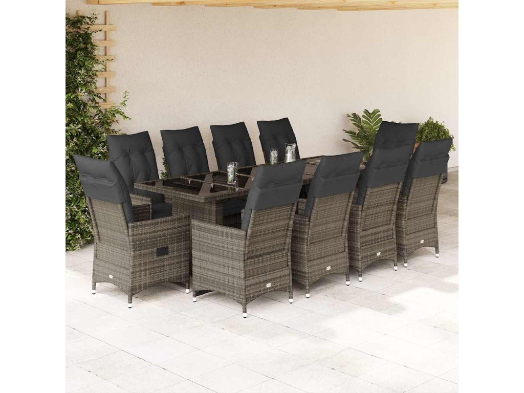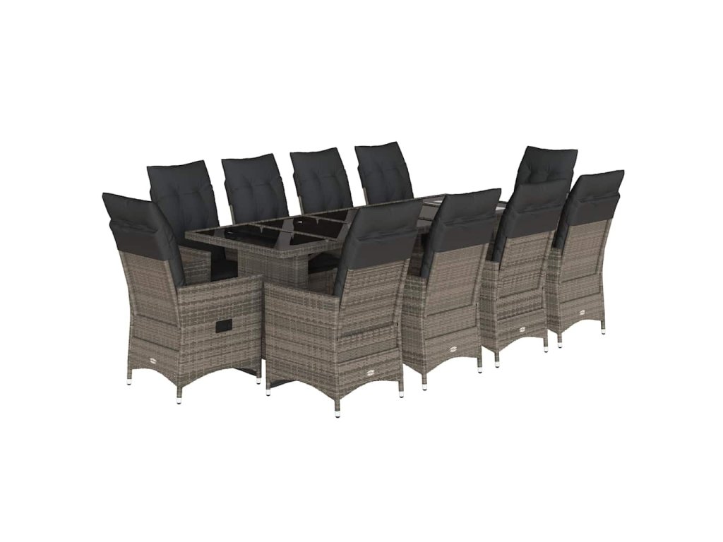 11dílný zahradní bistro set s poduškami šedý polyratan 3277262