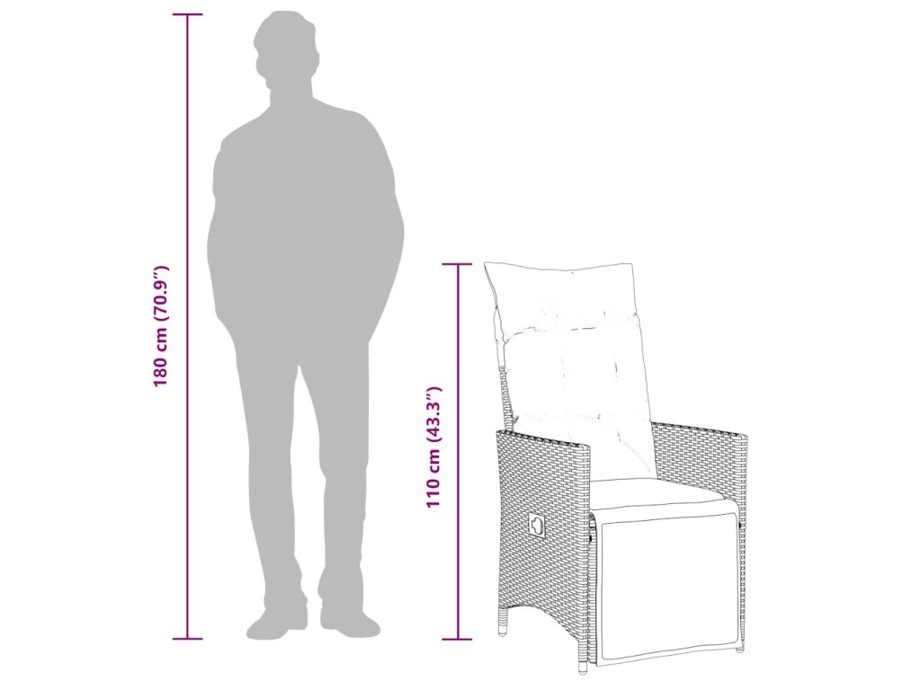 - Nastavitelné opěradlo a opěrka nohou: Tato zahradní židle je opatřena rukojetí. Zatáhnutím za ni můžete opěradlo nastavit do libovolné polohy a stejně tak ho můžete rychle vrátit do původní pozice.
