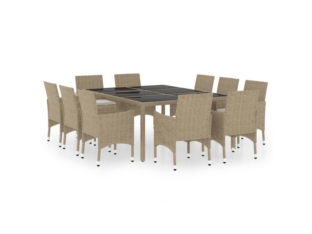 11dílný zahradní jídelní set polyratan béžový 3058564
