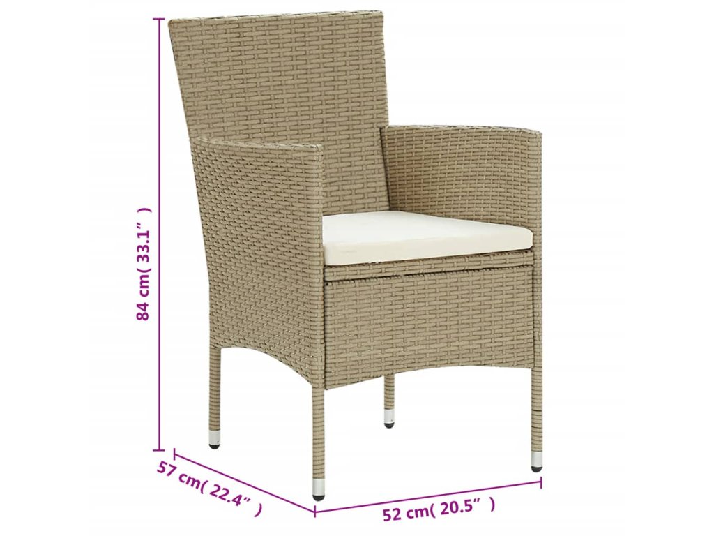 - Pohodlné židle: Zahradní židle má zaoblené opěradlo a područky, a tím pádem i ergonomičtější tvar pro maximální pohodlí. Součástí balení jsou také podušky pro příjemnější sezení. Potah na zip lze stáhnout a jednoduše vyprat.