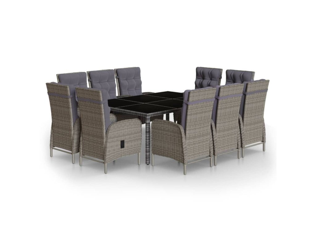 11dílný zahradní jídelní set polyratan šedý 3058554