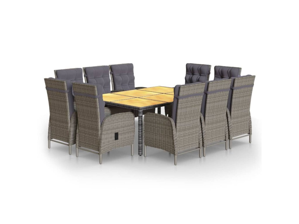 11dílný zahradní jídelní set polyratan šedý 3058555
