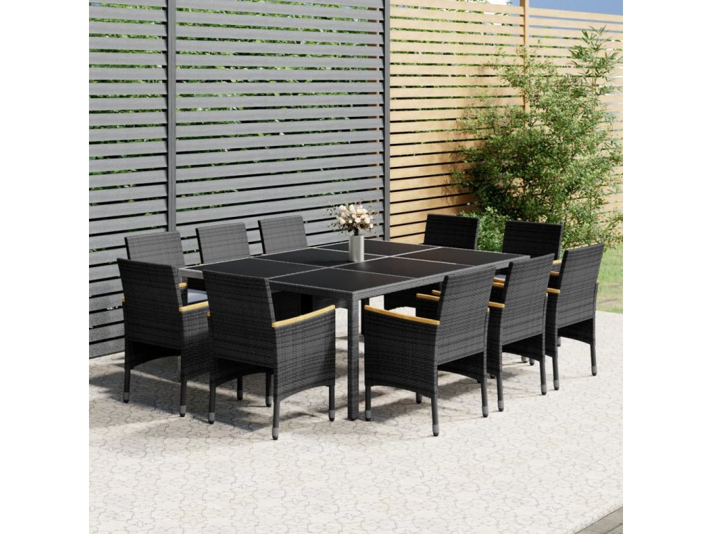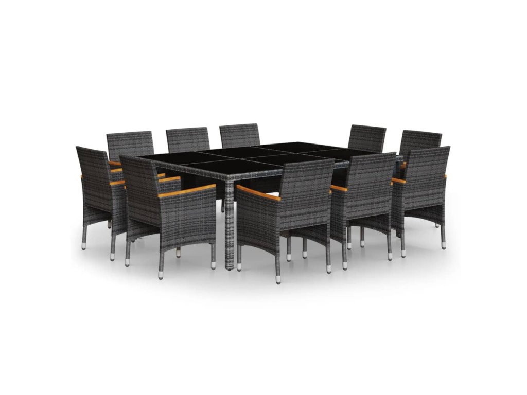 11dílný zahradní jídelní set polyratan šedý 3058569