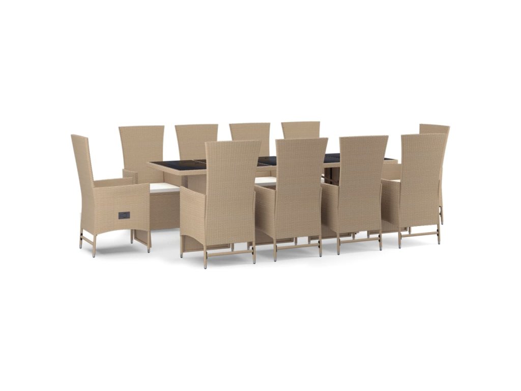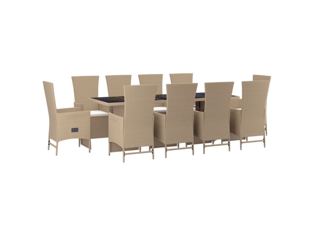 11dílný zahradní jídelní set s poduškami béžový polyratan 3157581