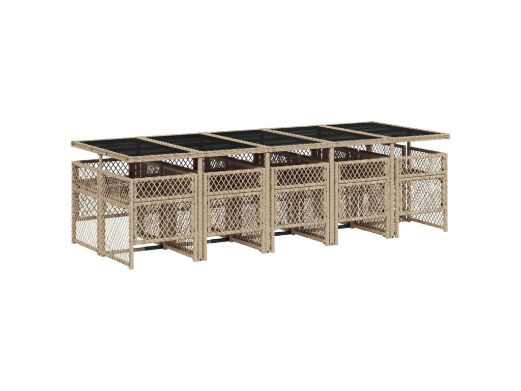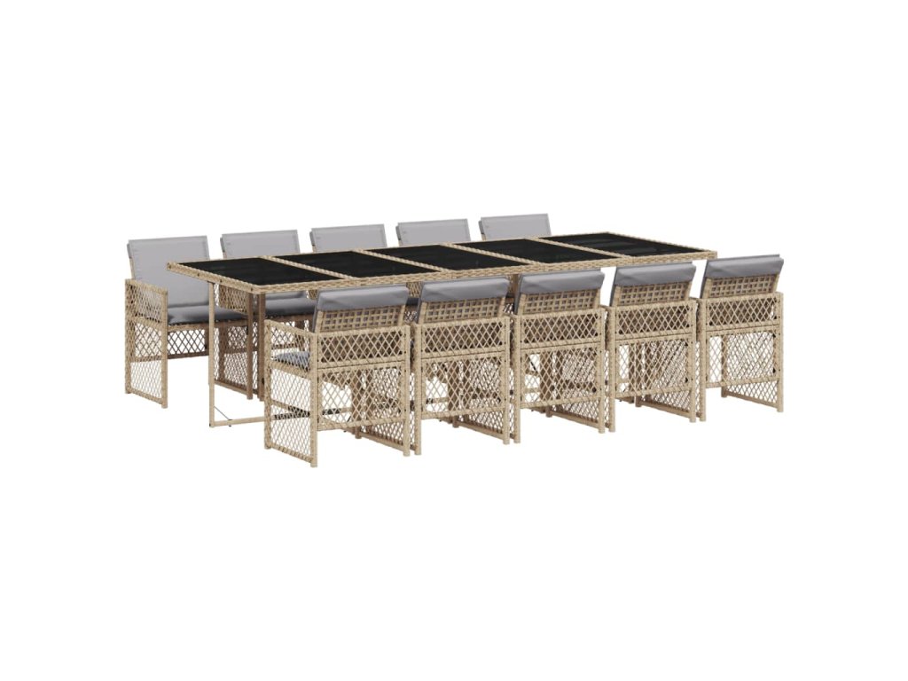 11dílný zahradní jídelní set s poduškami béžový polyratan 3210756